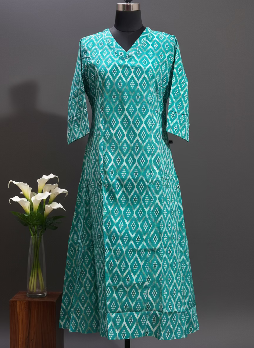 വിശദാംശങ്ങൾ: പ്യുവർ കോട്ടൺ എ ലൈൻ കുർത്തി